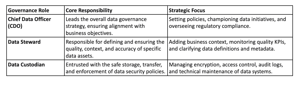 By formalising these roles, organisations can achieve crucial outcomes, such as creating a “single view of the customer,” standardising names across systems, and ensuring data used in regulatory reporting (like GDPR) is complete and auditable—all non-negotiable prerequisites for accurate automated decision support.